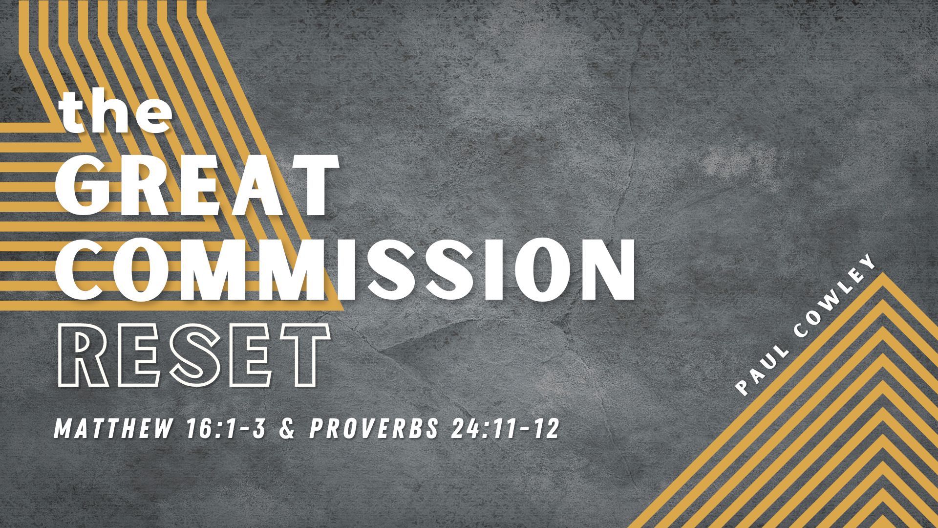The Great Commission Reset + Q & A | Matthew 16:1-3 & Proverbs 24:11-12 - Paul Cowley